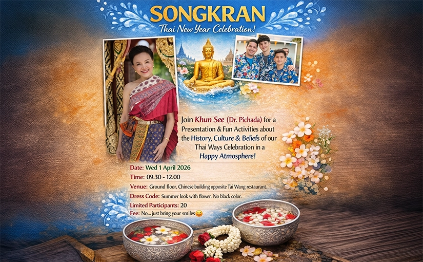 This Songkran, Dr. Pichada Rajavechpisal, Customer Relations Manager at Asian Tigers Group Thailand, had the honor of being invited as a special guest speaker at the National Museum Bangkok. She presented on the cultural heritage, beliefs, and celebrations of Songkran. The audience comprised members of the National Museum Volunteers: expatriates living in Bangkok who share a strong passion for learning about Thai culture and history.